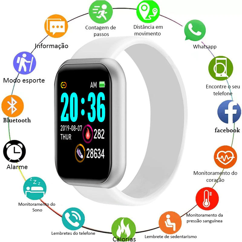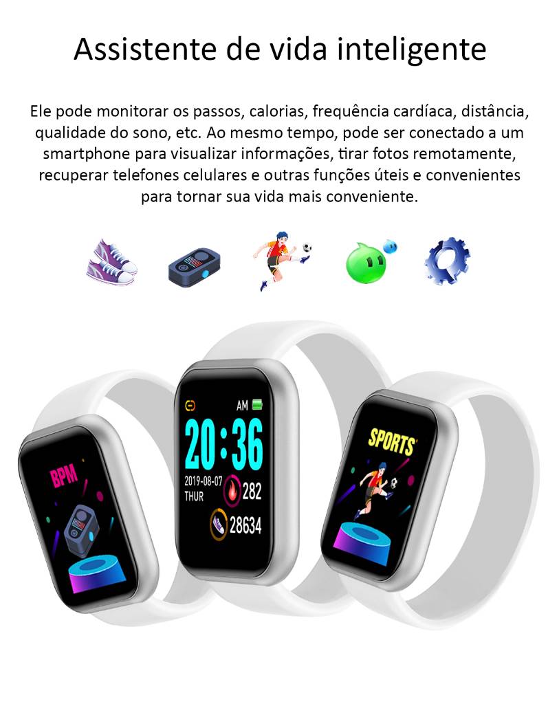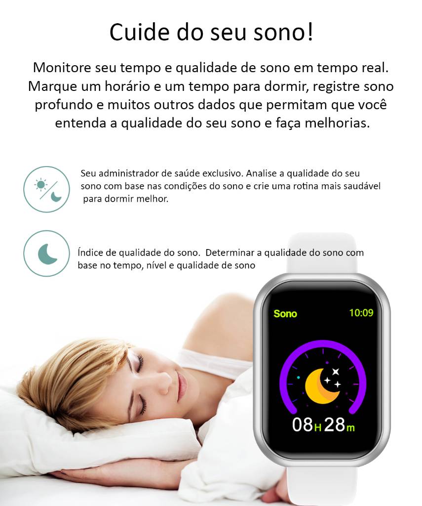 O relógio pode monitorar os passos, calorias, frequência cardíaca, distância, qualidade do sono, etc. do dia. Ao mesmo tempo, ele pode conectado a um telefone inteligente para visualizar informações, remotamente tirar fotos, recuperar telefones celulares e outras funções pensativo e conveniente para tornar sua vida mais conveniente.