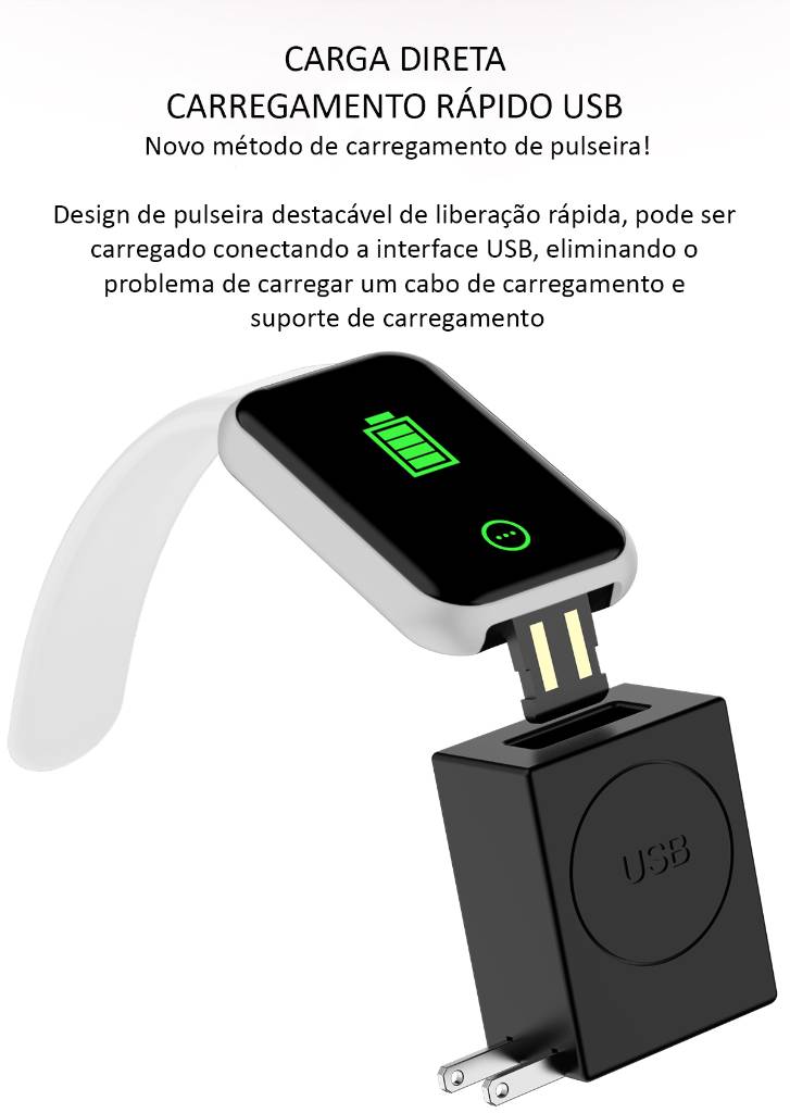 Novo método de carregamento de pulseira, design de pulseira destacável de liberação rápida, pode ser carregado conectando a interface usb, eliminando o problema de carregar um cabo de carregamento e suporte de carregamento.
